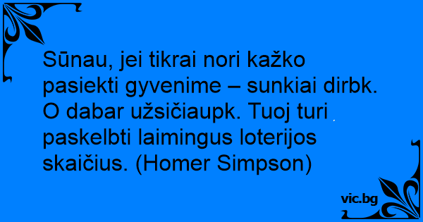 Sūnau, jei tikrai nori kažko pasiekti gyvenime – sunkiai dirbk. O dabar užsičiaupk. Tuoj turi paskelbti laimingus loterijos skaičius. (Homer Simpson)