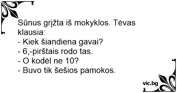Sūnus grįžta iš mokyklos. Tėvas klausia: