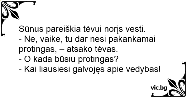 - Ne, vaike, tu dar nesi pakankamai protingas, – atsako tėvas.