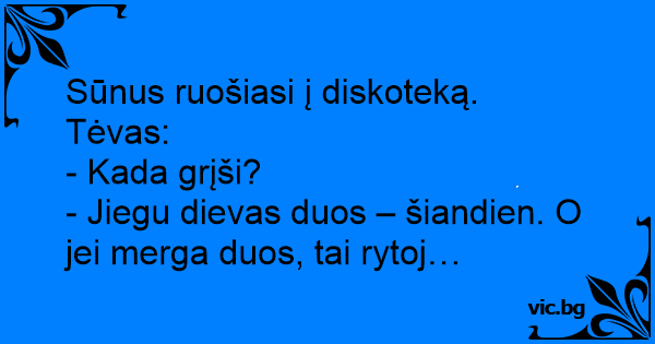 Sūnus ruošiasi į diskoteką. Tėvas: