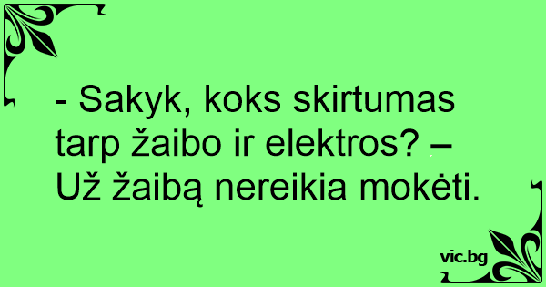 - Sakyk, koks skirtumas tarp žaibo ir elektros? – Už žaibą nereikia mokėti.