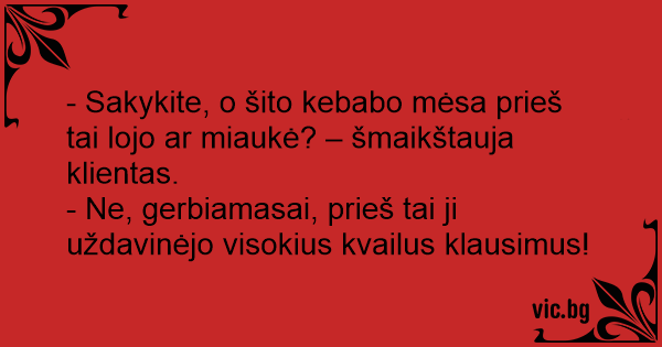 - Sakykite, o šito kebabo mėsa prieš tai lojo ar miaukė? – šmaikštauja klientas.