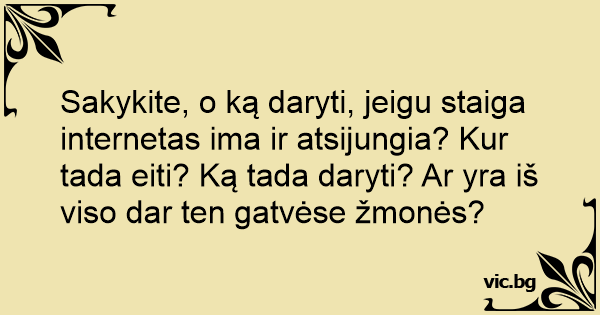 Sakykite, o ką daryti, jeigu staiga internetas ima ir atsijungia? Kur tada eiti? Ką tada daryti? Ar yra iš viso dar ten gatvėse žmonės?