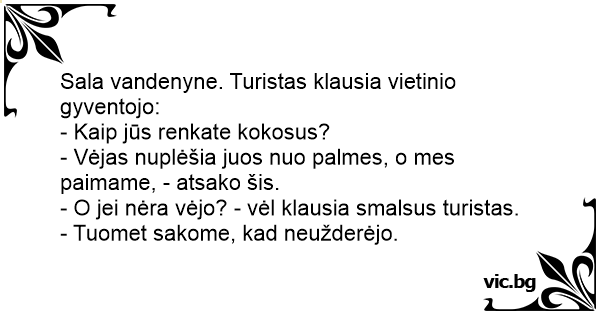 Sala vandenyne. Turistas klausia vietinio gyventojo: