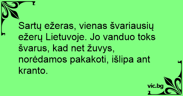 Sartų ežeras, vienas švariausių ežerų Lietuvoje. Jo vanduo toks švarus, kad net žuvys, norėdamos pakakoti, išlipa ant kranto.