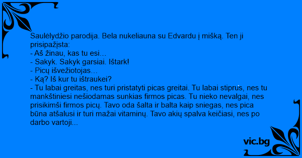 - Tu labai greitas, nes turi pristatyti picas greitai. Tu labai stiprus, nes tu mankštiniesi nešiodamas sunkias firmos picas. Tu nieko nevalgai, nes prisikimši firmos picų. Tavo oda šalta ir balta kaip sniegas, nes рiса būna atšalusi ir turi mažai vitaminų. Tavo akių spalva keičiasi, nes po darbo vartoji heroiną. Kartais tu kalbi keistai, nes tavo burna būna pilna…