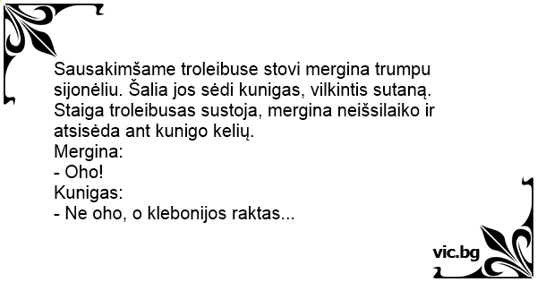 Staiga troleibusas sustoja, mergina neišsilaiko ir atsisėda ant kunigo kelių.