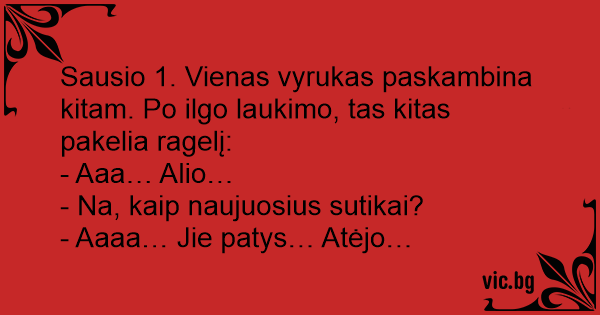 Sausio 1. Vienas vyrukas paskambina kitam. Po ilgo laukimo, tas kitas pakelia ragelį: