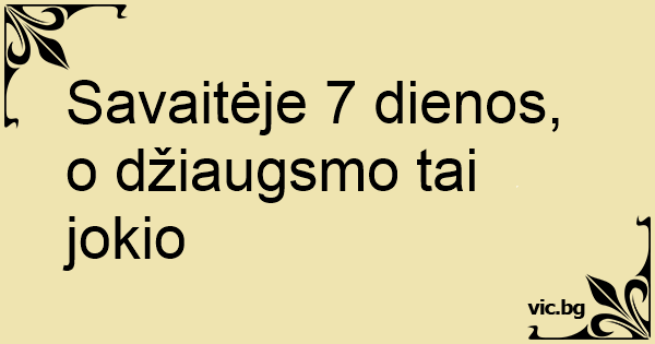 Savaitėje 7 dienos, o džiaugsmo tai jokio