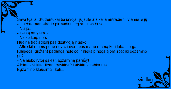 - Chebra man atrodo pirmadienį egzaminas buvo…