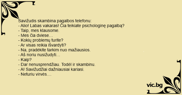 - Alio! Labas vakaras! Čia teikiate psichologinę pagalbą?