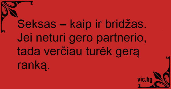 Seksas – kaip ir bridžas. Jei neturi gero partnerio, tada verčiau turėk gerą ranką.
