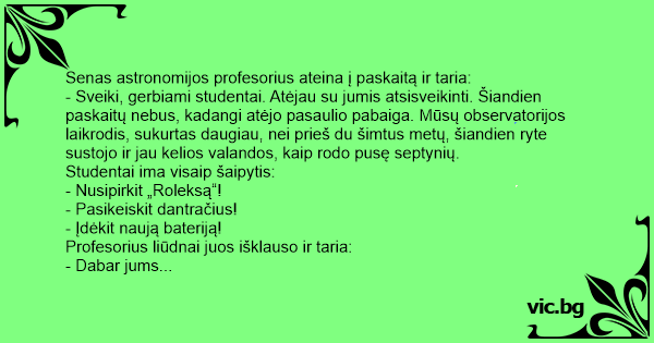 Senas astronomijos profesorius ateina į paskaitą ir taria: