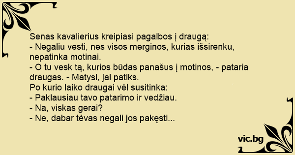 Senas kavalierius kreipiasi pagalbos į draugą: