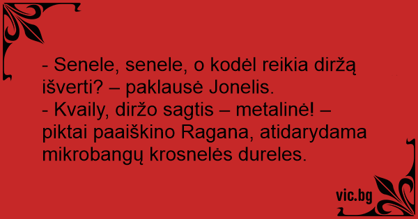 - Senele, senele, o kodėl reikia diržą išverti? – paklausė Jonelis.