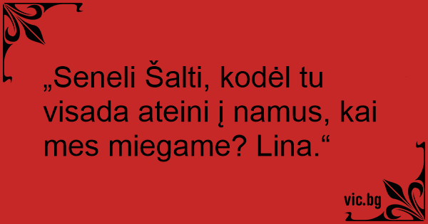 „Seneli Šalti, kodėl tu visada ateini į namus, kai mes miegame? Lina.“
