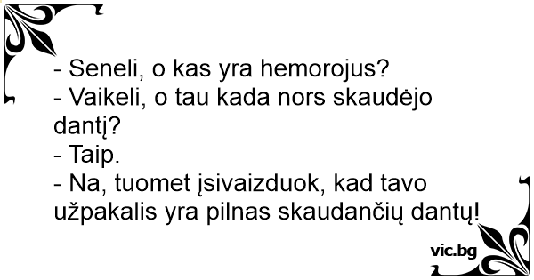 - Na, tuomet įsivaizduok, kad tavo užpakalis yra pilnas skaudančių dantų!