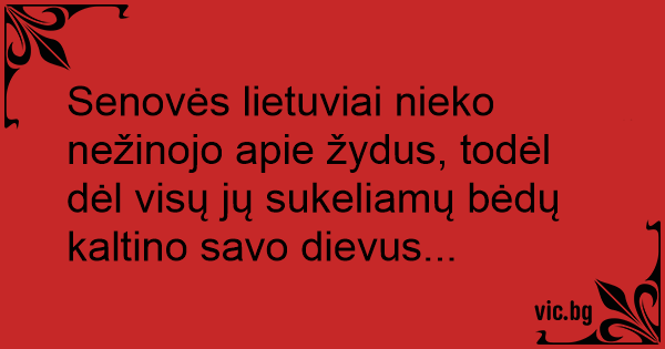Senovės lietuviai nieko nežinojo apie žydus, todėl dėl visų jų sukeliamų bėdų kaltino savo dievus...