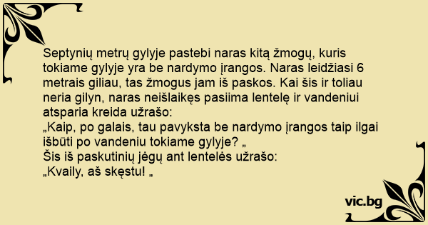 „Kaip, po galais, tau pavyksta be nardymo įrangos taip ilgai išbūti po vandeniu tokiame gylyje? „