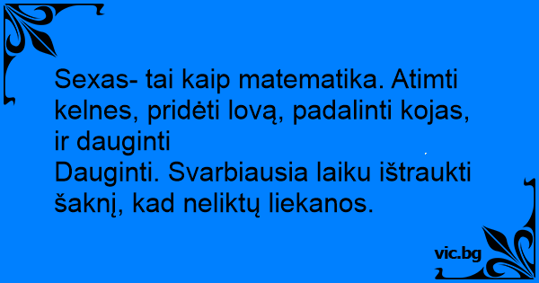 Sexas- tai kaip matematika. Atimti kelnes, pridėti lovą, padalinti kojas, ir dauginti