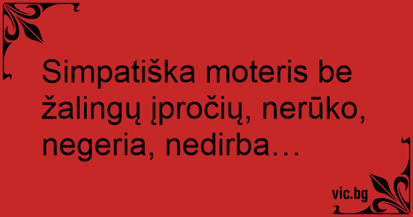 Simpatiška moteris be žalingų įpročių, nerūko, negeria, nedirba…