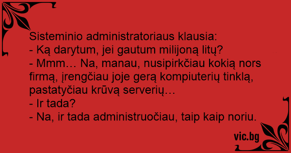 Sisteminio administratoriaus klausia: