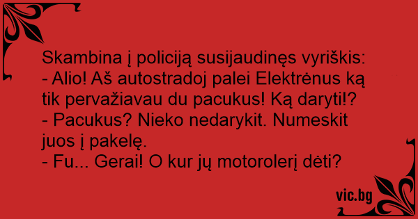 - Alio! Aš autostradoj palei Elektrėnus ką tik pervažiavau du pacukus! Ką daryti!?