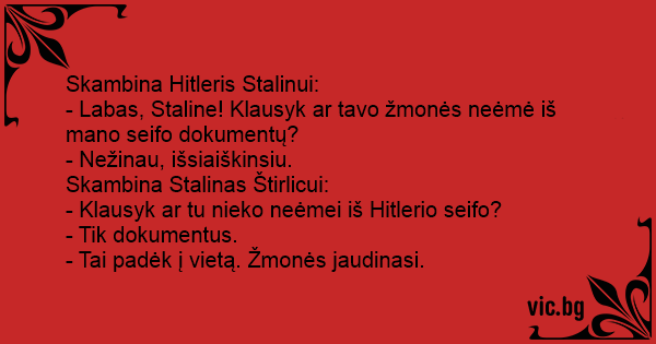 - Labas, Staline! Klausyk ar tavo žmonės neėmė iš mano seifo dokumentų?