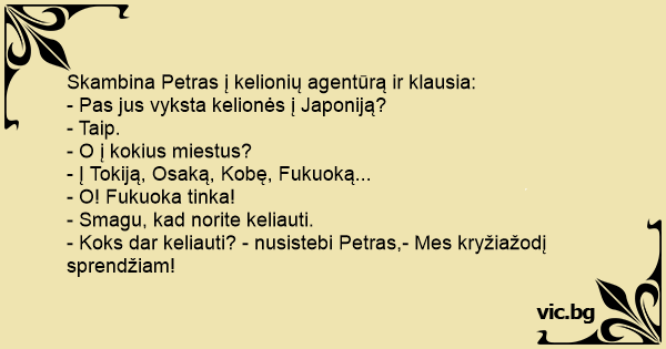 - Koks dar keliauti? - nusistebi Petras,- Mes kryžiažodį sprendžiam!