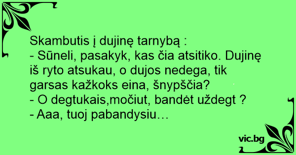 - Sūneli, pasakyk, kas čia atsitiko. Dujinę iš ryto atsukau, o dujos nedega, tik garsas kažkoks eina, šnypščia?