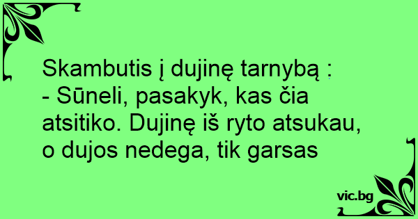 - Sūneli, pasakyk, kas čia atsitiko. Dujinę iš ryto atsukau, o dujos nedega, tik garsas