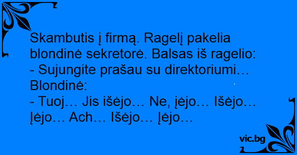 Skambutis į firmą. Ragelį pakelia blondinė sekretorė. Balsas iš ragelio: