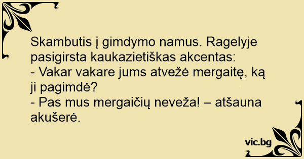- Pas mus mergaičių neveža! – atšauna akušerė.
