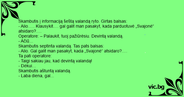 Operatore: – Palaukit, tuoj pažiūrėsiu. Devintą valandą.