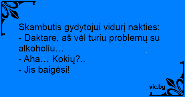 - Daktare, aš vėl turiu problemų su alkoholiu…