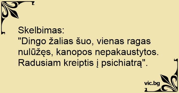 "Dingo žalias šuo, vienas ragas nulūžęs, kanopos nepakaustytos. Radusiam kreiptis į psichiatrą".