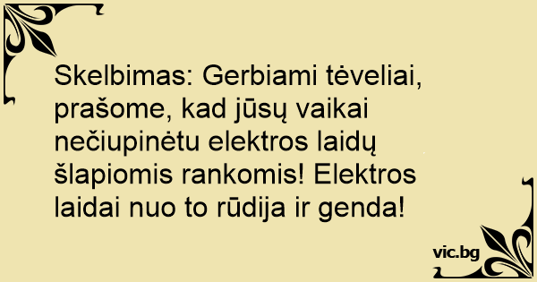 Skelbimas: Gerbiami tėveliai, prašome, kad jūsų vaikai nečiupinėtu elektros laidų šlapiomis rankomis! Elektros laidai nuo to rūdija ir genda!