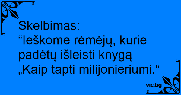 “Ieškome rėmėjų, kurie padėtų išleisti knygą „Kaip tapti milijonieriumi.“