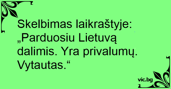 „Parduosiu Lietuvą dalimis. Yra privalumų. Vytautas.“