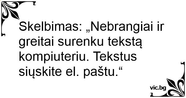 Skelbimas: „Nebrangiai ir greitai surenku tekstą kompiuteriu. Tekstus siųskite el. paštu.“