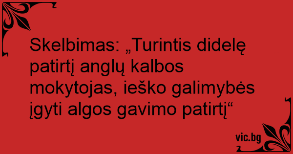Skelbimas: „Turintis didelę patirtį anglų kalbos mokytojas, ieško galimybės įgyti algos gavimo patirtį“