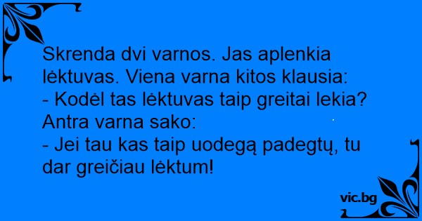 Skrenda dvi varnos. Jas aplenkia lėktuvas. Viena varna kitos klausia:
