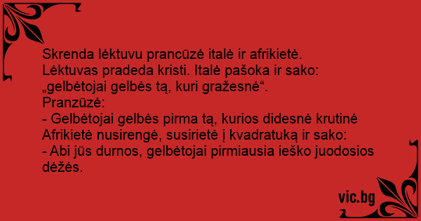 - Gelbėtojai gelbės pirma tą, kurios didesnė krutinė