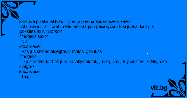 - O jūs norite, kad aš jum pasakyčiau tokį juoką, kad jūs juoksitės iki Niujorko ir atgal?