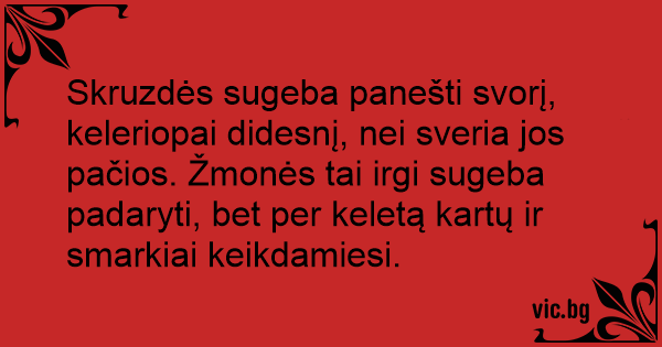 Skruzdės sugeba panešti svorį, keleriopai didesnį, nei sveria jos pačios. Žmonės tai irgi sugeba padaryti, bet per keletą kartų ir smarkiai keikdamiesi.