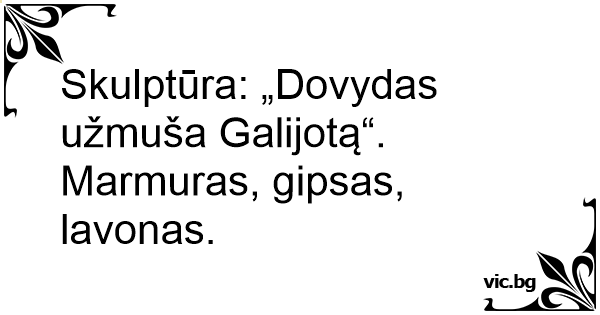 Skulptūra: „Dovydas užmuša Galijotą“. Marmuras, gipsas, lavonas.
