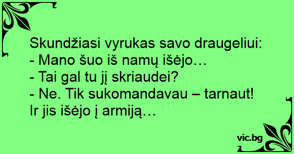 - Ne. Tik sukomandavau – tarnaut! Ir jis išėjo į armiją…