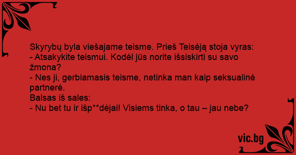 - Atsakykite teismui. Kodėl jūs norite išsiskirti su savo žmona?
