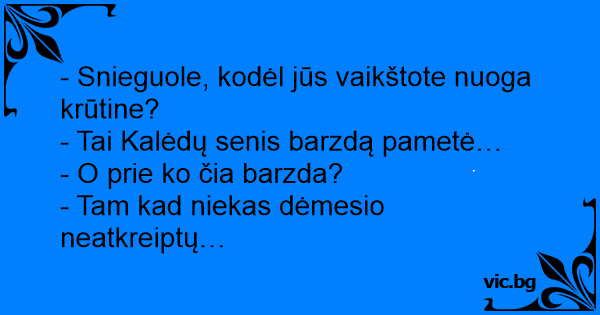 - Snieguole, kodėl jūs vaikštote nuoga krūtine?