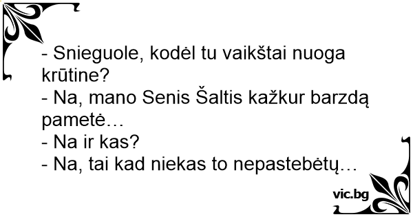 - Snieguole, kodėl tu vaikštai nuoga krūtine?